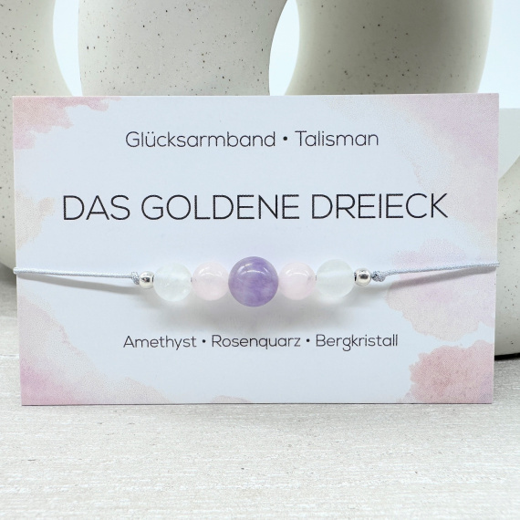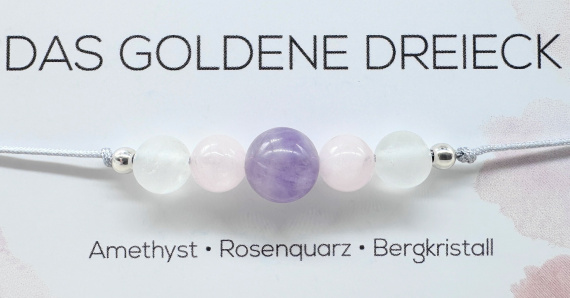 Edelsteine: Rosenquarz + Bergkristall ca. Ø 6 mm + Amethyst hell ca. Ø 8 mm