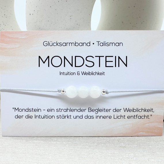 Der Mondstein gilt als Stein der Weiblichkeit, Intuition und emotionalen Balance. Er unterstützt dich dabei, dich mit deiner inneren Stimme zu verbinden, hilft bei Stimmungsschwankungen und bringt Harmonie in Herz und Geist. Besonders in Zeiten der Veränderung wirkt er beruhigend und stärkend – ein perfekter Begleiter für neue Lebensphasen.