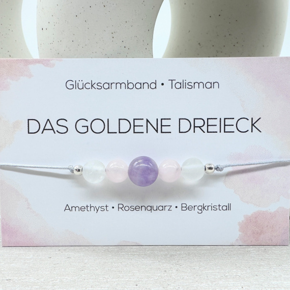 Edelsteine: Rosenquarz + Bergkristall ca. Ø 6 mm + Amethyst hell ca. Ø 8 mm