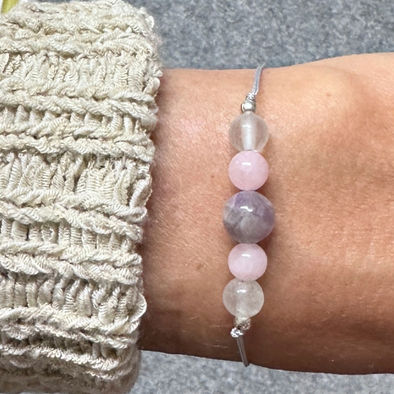 💖 Zierliches Macramé Edelstein Armband aus Rosenquarz - Bergkristall - Amethyst 💖